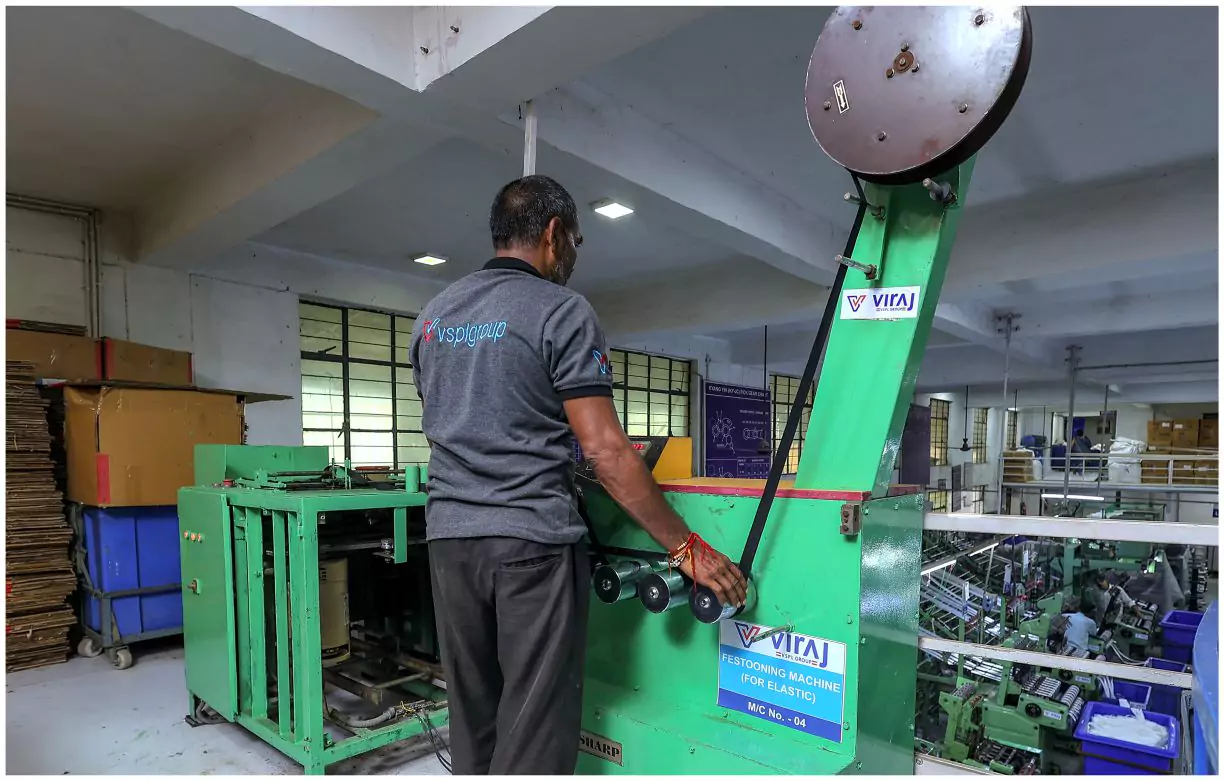 Thru this attachment uniform & continous tension on rubber threads is maintained while on weaving process of elastic tapes & webbings.